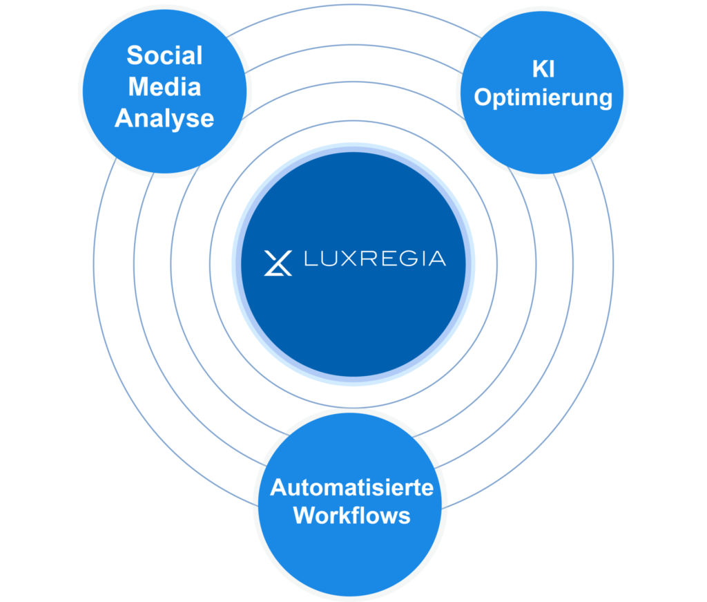 Luxregia verbindet Social-Media-Marketing, KI-Sichtbarkeit und digitale Prozessautomatisierung. Dadurch entsteht ein System, das nicht nur Reichweite erzeugt, sondern messbare Geschäftsergebnisse ermöglicht.
